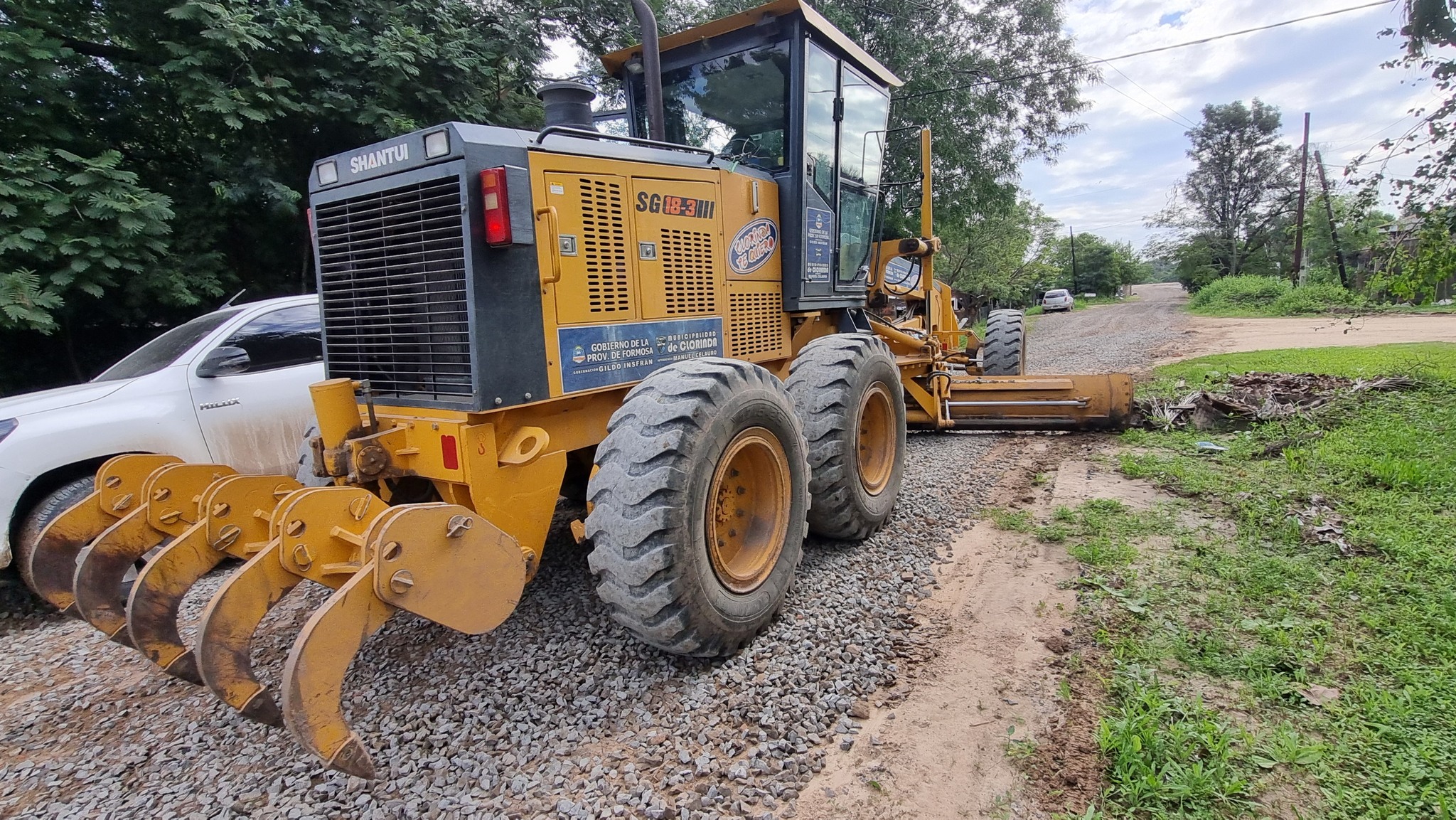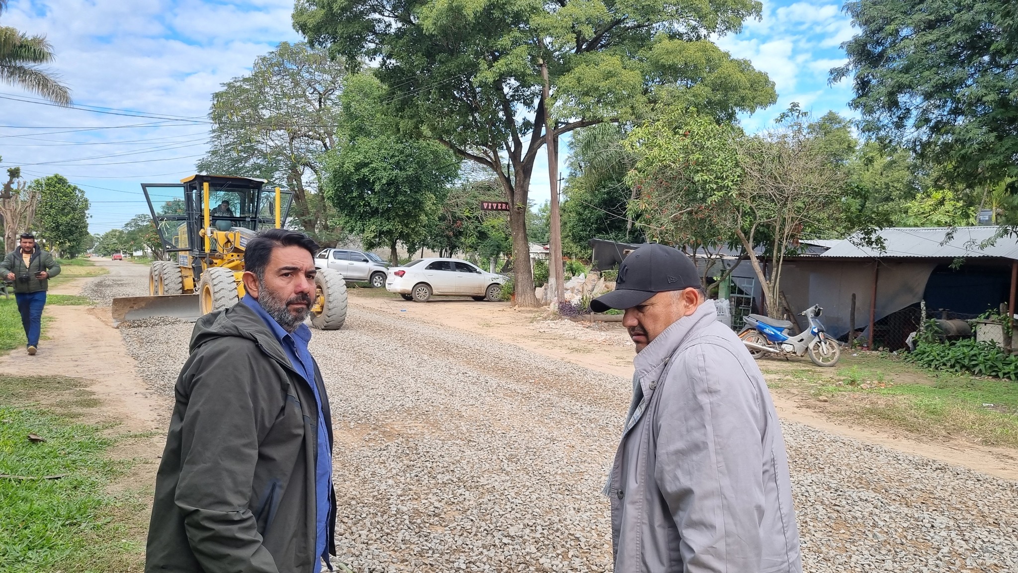 La primera parada fue en la zona norte de la ciudad, específicamente en la calle Los Andes, entre Ayacucho y la barrera, donde se realizan tareas de enripiado para mejorar la transitabilidad. Luego se trasladaron a la avenida Roque Sáenz Peña, en su intersección con calle San Luis, donde una empresa local se encuentra desarrollando la continuidad del pavimento. En ese punto, antes del asfalto, se ejecutan obras complementarias como un canal de desagüe pluvial, además de conexiones de agua potable y cloacas para los domicilios del sector.