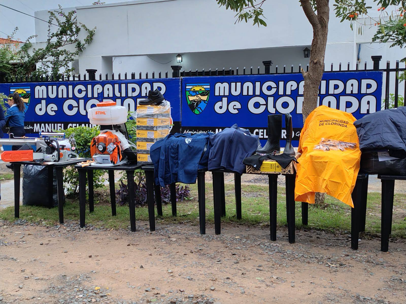 En la mañana del viernes, el intendente de Clorinda, Ariel Caniza, acompañado por funcionarios municipales, concejales, candidatos a concejales y el diputado provincial Navas, encabezó un acto de entrega de indumentaria y elementos de trabajo destinado a personal del C.I.C. y otras áreas del municipio. La actividad se llevó a cabo en inmediaciones del edificio municipal y forma parte de un plan de fortalecimiento del recurso humano de la comuna.