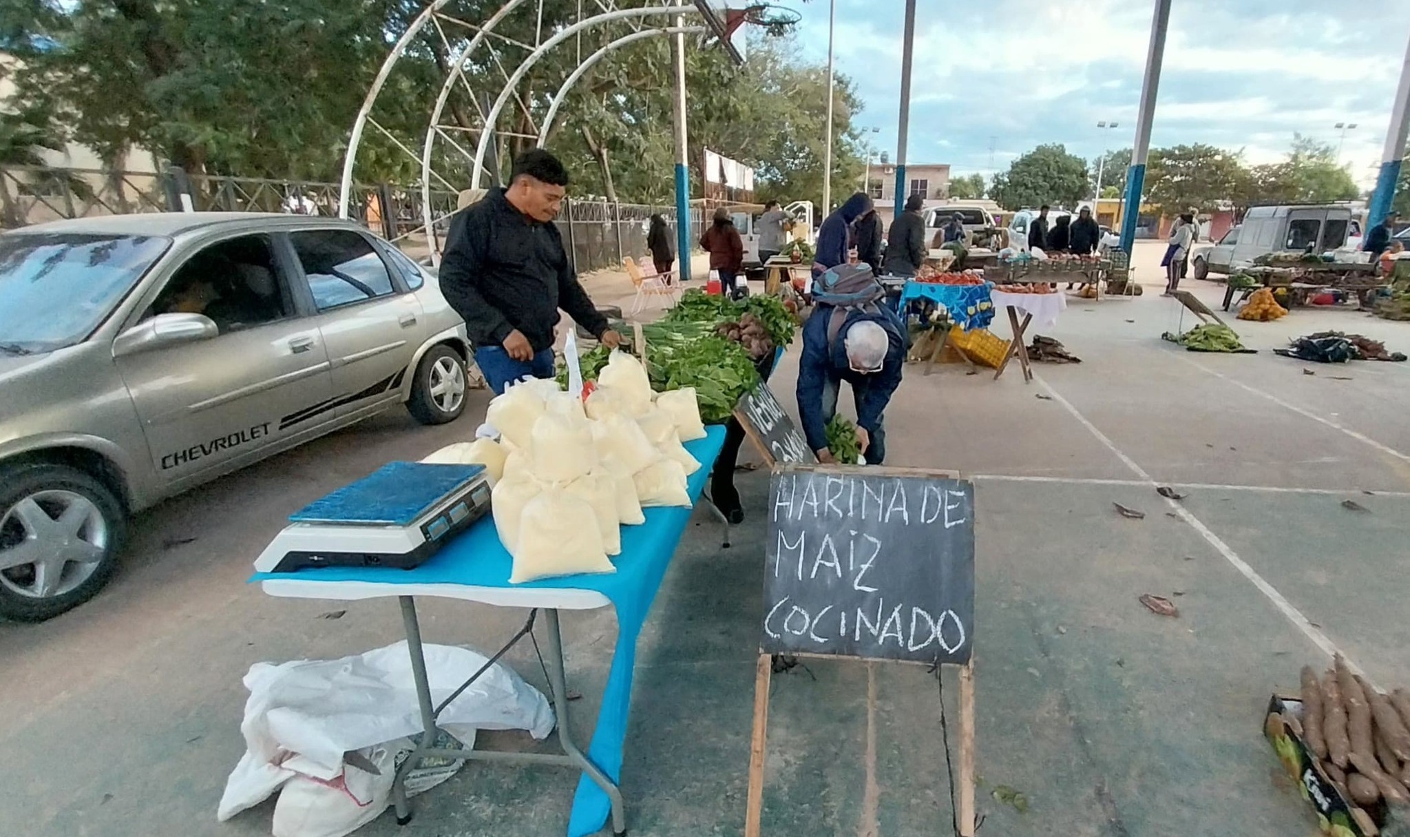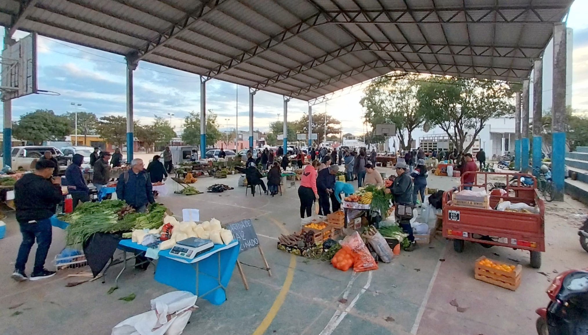 Como cada viernes, la feria municipal se encuentra funcionando en el playón deportivo Jin González del complejo habitacional, ofreciendo a los vecinos una amplia variedad de productos a precios accesibles.