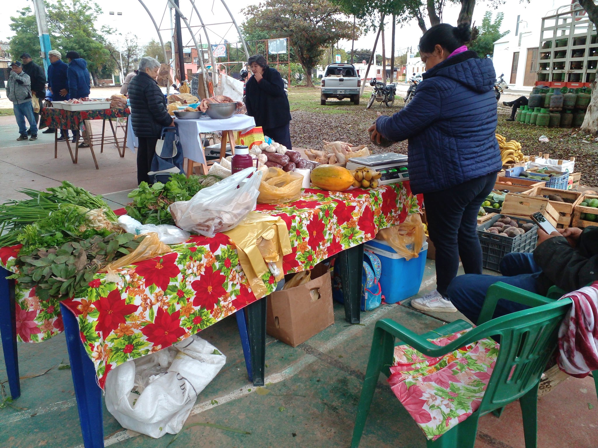 Ni el feriado ni las condiciones climáticas adversas impidieron que la tradicional feria municipal se lleve a cabo este viernes en el playón deportivo Jin González, ubicado en el corazón del complejo habitacional. Como cada semana, desde las primeras horas de la mañana, los feriantes comenzaron a instalar sus puestos para ofrecer a los vecinos una gran variedad de productos a precios accesibles.