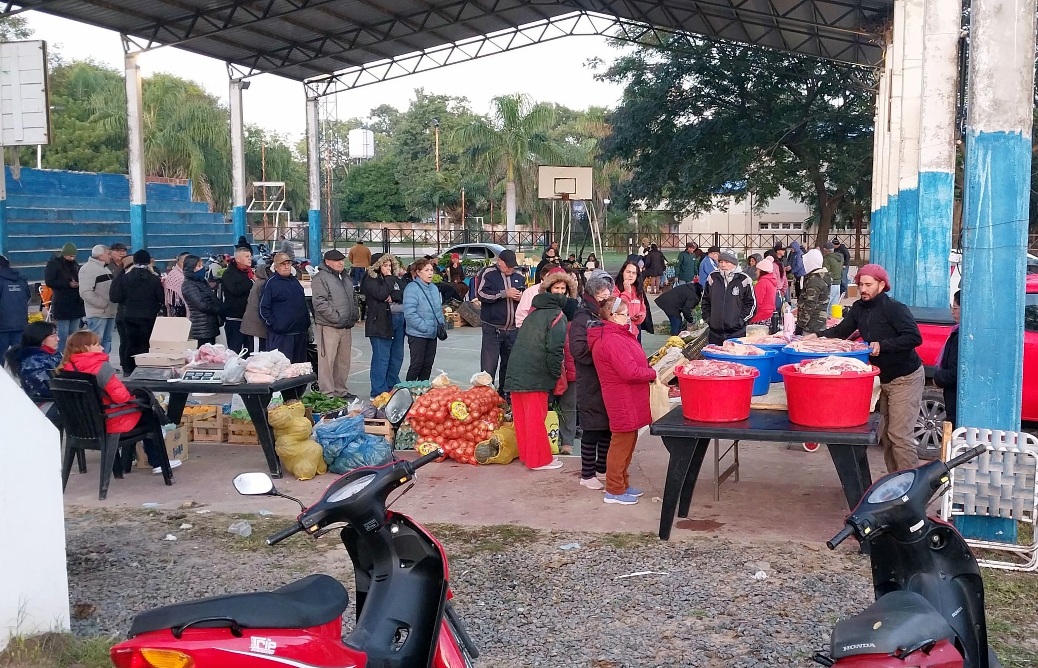 Vecinos pueden acceder a productos frescos como frutas, verduras, panificados y carnes a precios accesibles. La feria se realiza en el playón deportivo del complejo habitacional, con la participación de productores locales.