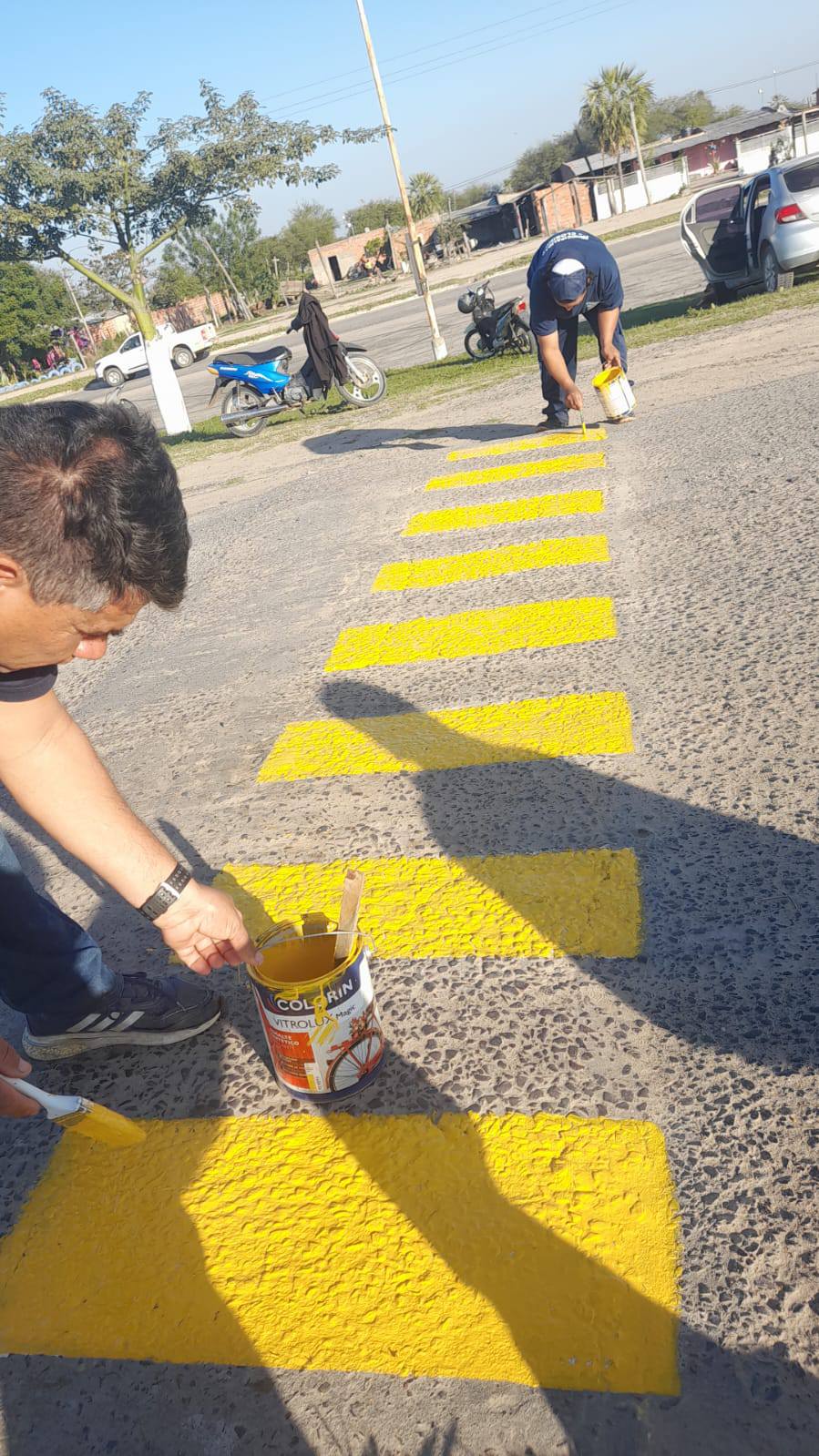 El equipo municipal avanza con la renovación de la pintura en lomadas para mejorar la seguridad vial y la visibilidad en distintos puntos de la ciudad.