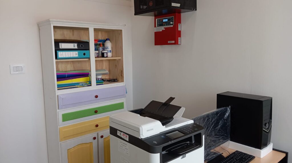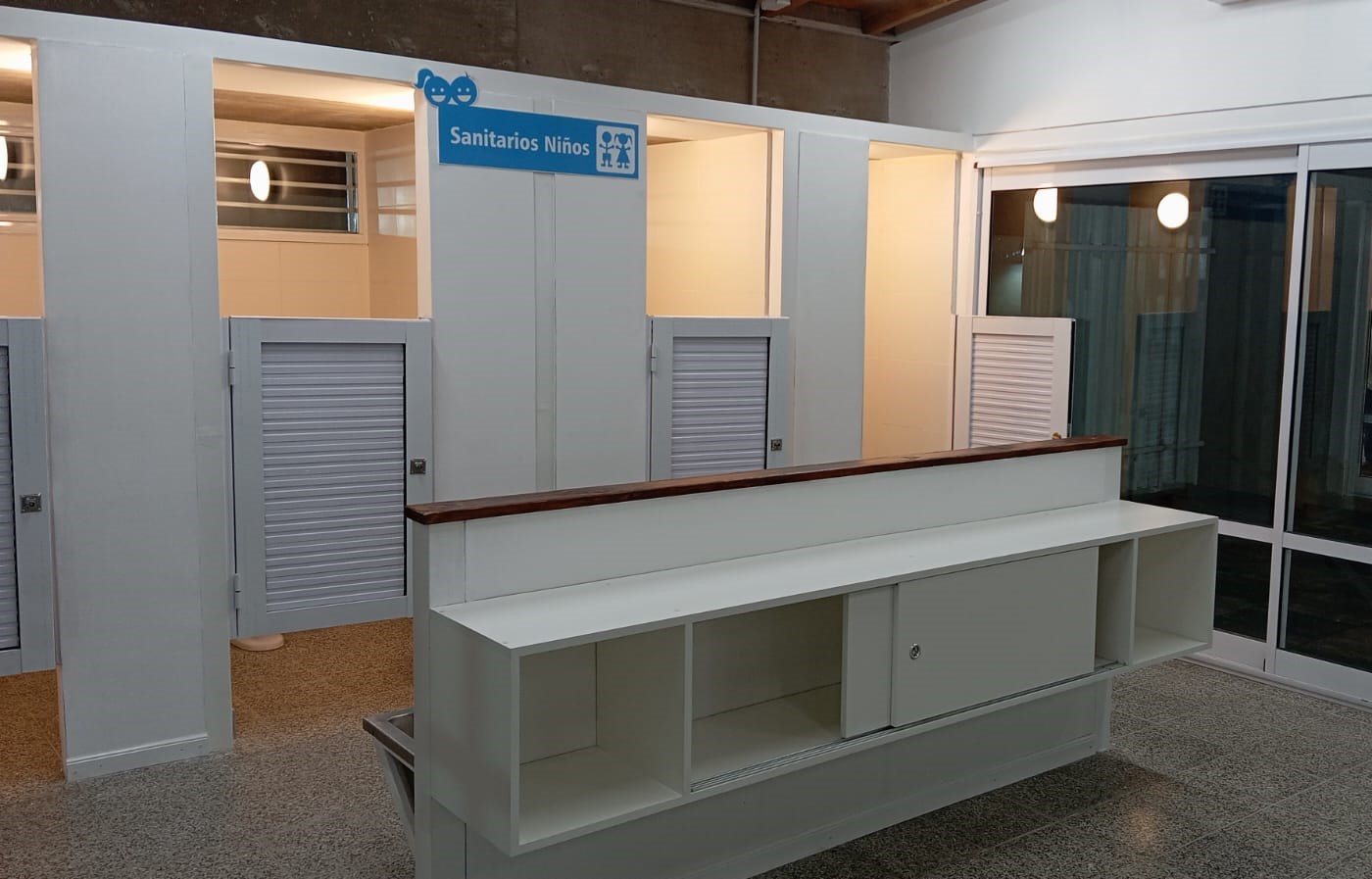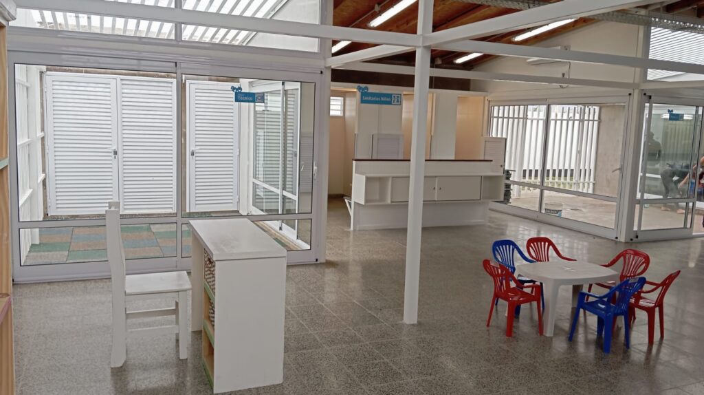 Además, sanitarios para niños, administrativos y otro adaptado para personas con movilidad reducida; dos patios cubiertos y patio de juegos.