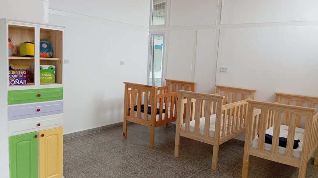 Este moderno y completo edificio cuenta con oficinas de administración, deambulatorio y lactario; también salas de dos, tres y cuatro años; cocina y comedor.