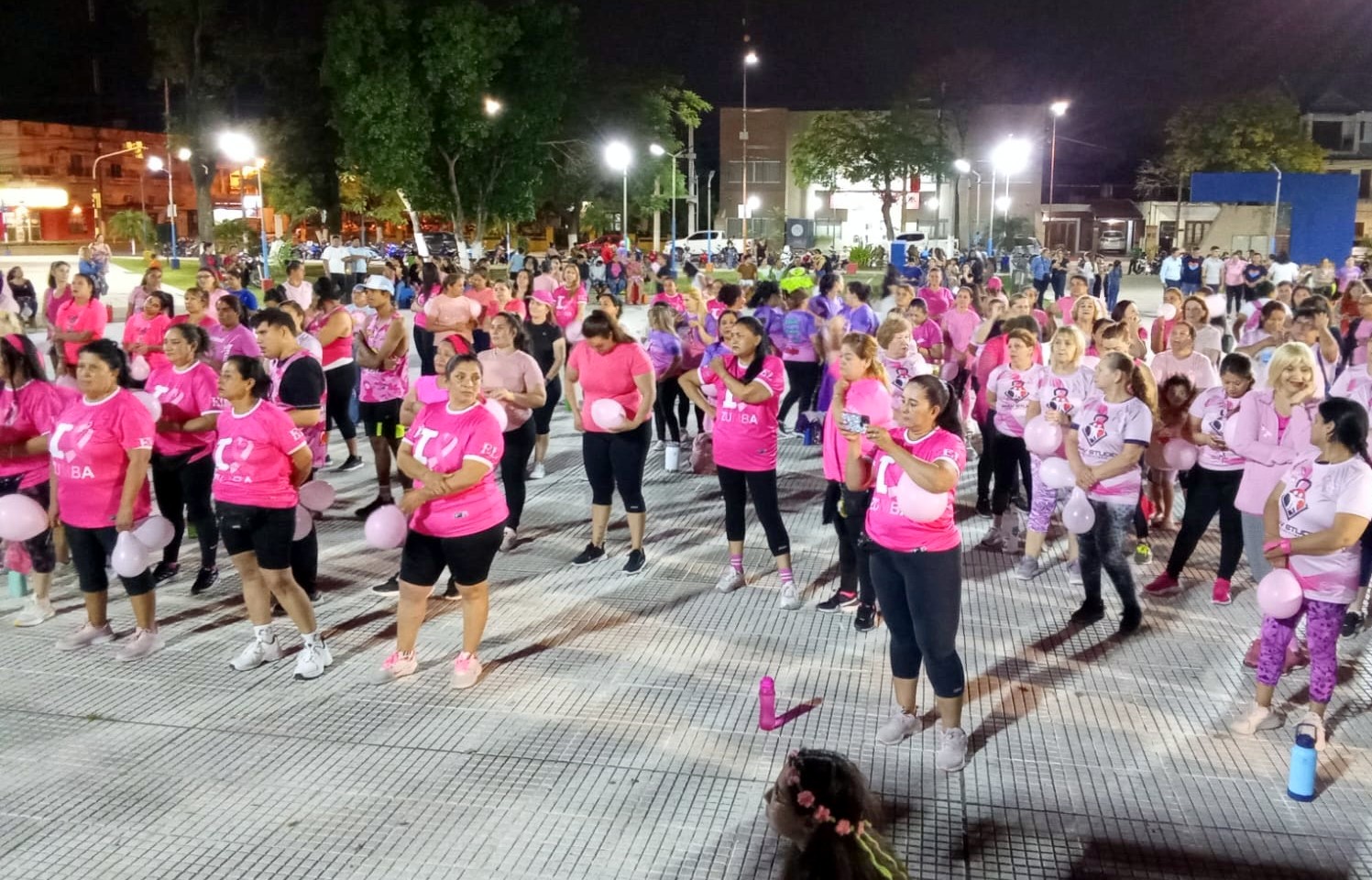 En el marco de las actividades por el mes de octubre rosa, la plaza San Martín fue escenario de una colorida y multitudinaria clase de zumba que convocó a más de un centenar de vecinos y vecinas. El encuentro tuvo como principal objetivo promover la concientización sobre la detección temprana del cáncer de mama a través de una jornada saludable y recreativa.