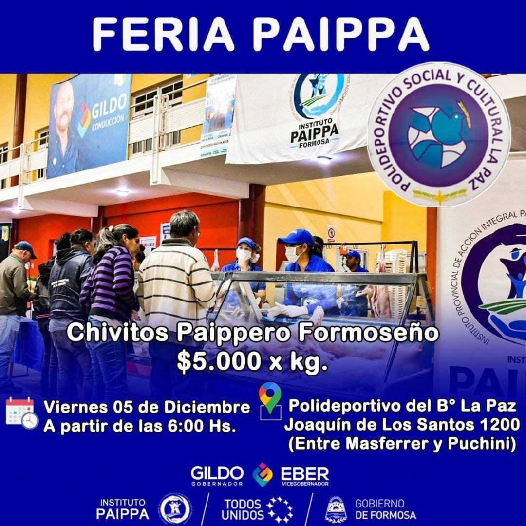 El coordinador ejecutivo del Instituto PAIPPA, el médico veterinario Rubén Casco, anticipó que este viernes 5, desde las 6 de la mañana, se comercializará la exquisita carne de chivitos formoseños en la feria franca del Polideportivo del barrio capitalino La Paz, ubicado en Joaquín de Los Santos al 1200.