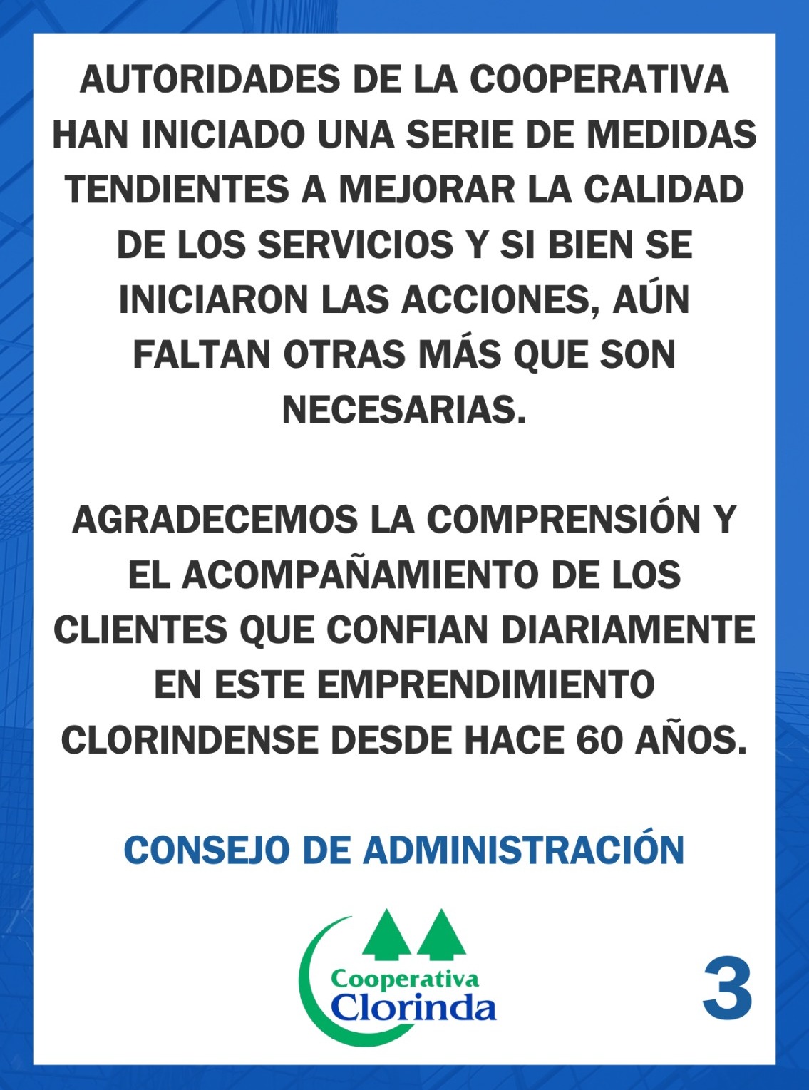 La Cooperativa Clorinda brinda información importante a la comunidad clorindense.