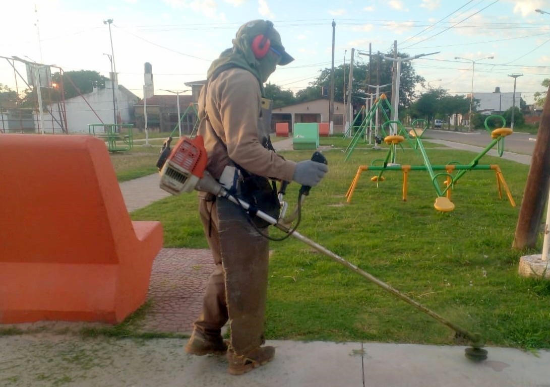 Personal de la Dirección de Espacios Verdes de la Municipalidad de Clorinda lleva adelante tareas de mantenimiento, limpieza y desmalezado